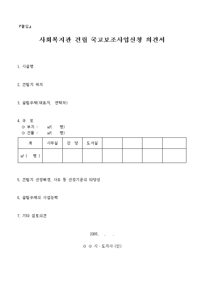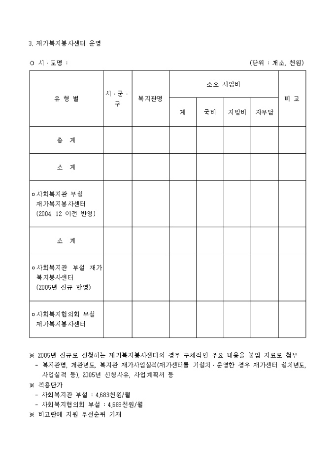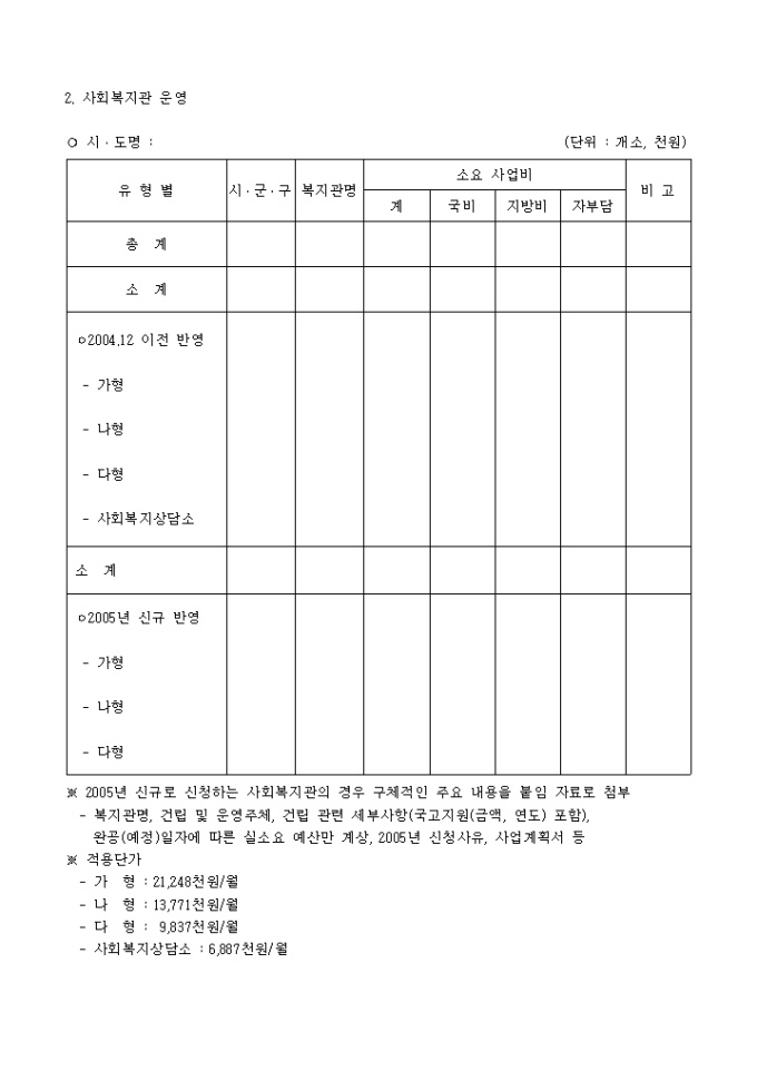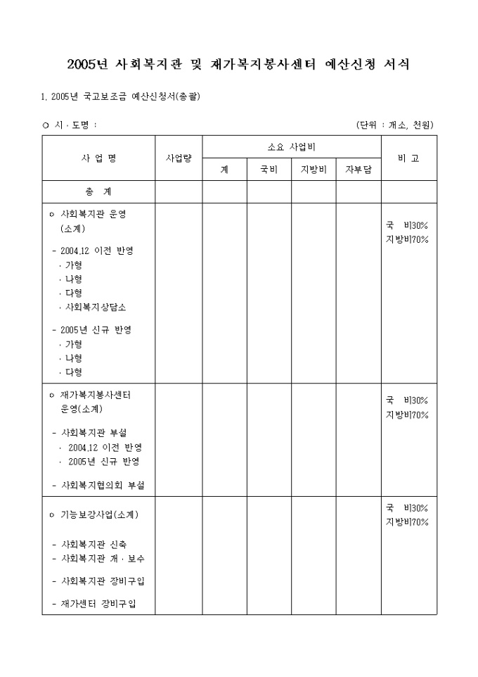2005년 사회복지관 및 재가복지봉사센터 예산신청 서식