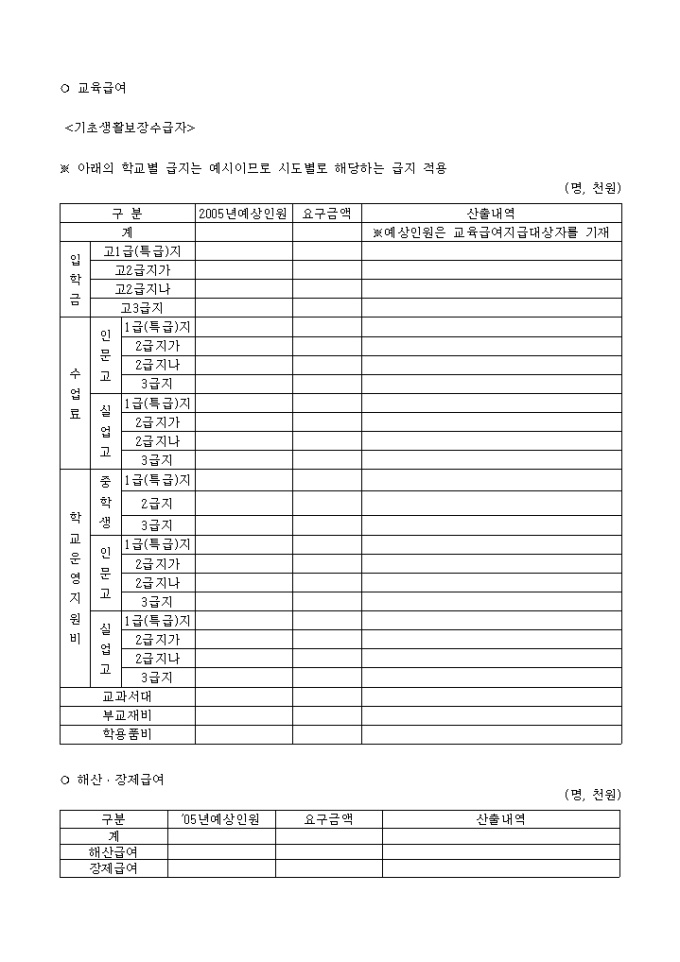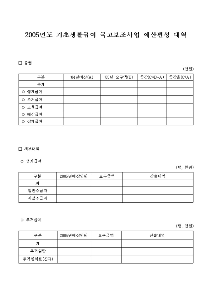 2. 세부내역(생계급여, 주거급여, 교육급여, 해산·장제급여)