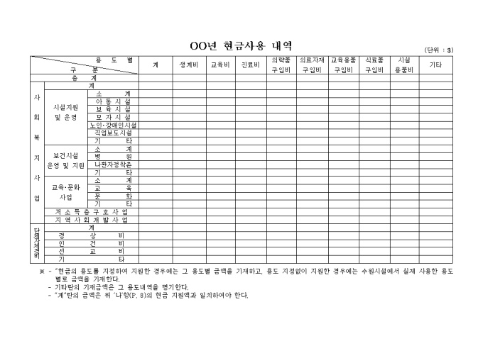 현금사용 내역