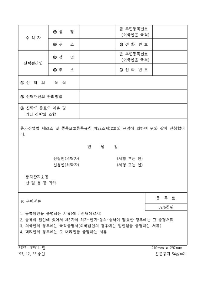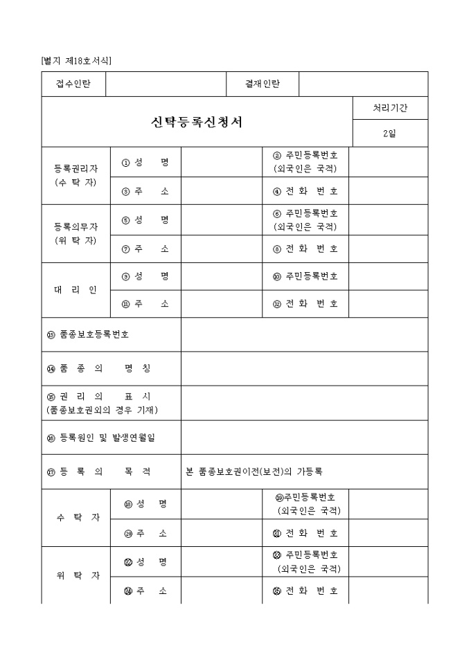 신탁등록신청서(별지 제18호서식)