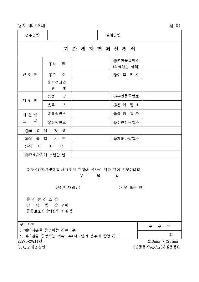 9,000원/월이 서식은 기간해태면제신청서로서 신청인의 인적사항과 대리인의 인적사항, 사건의 내용에 대해서 기입합니다.