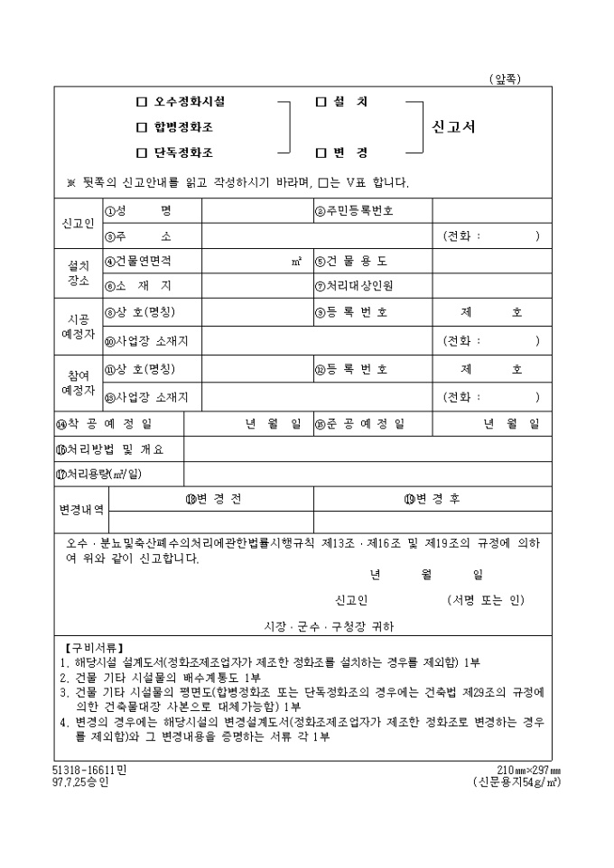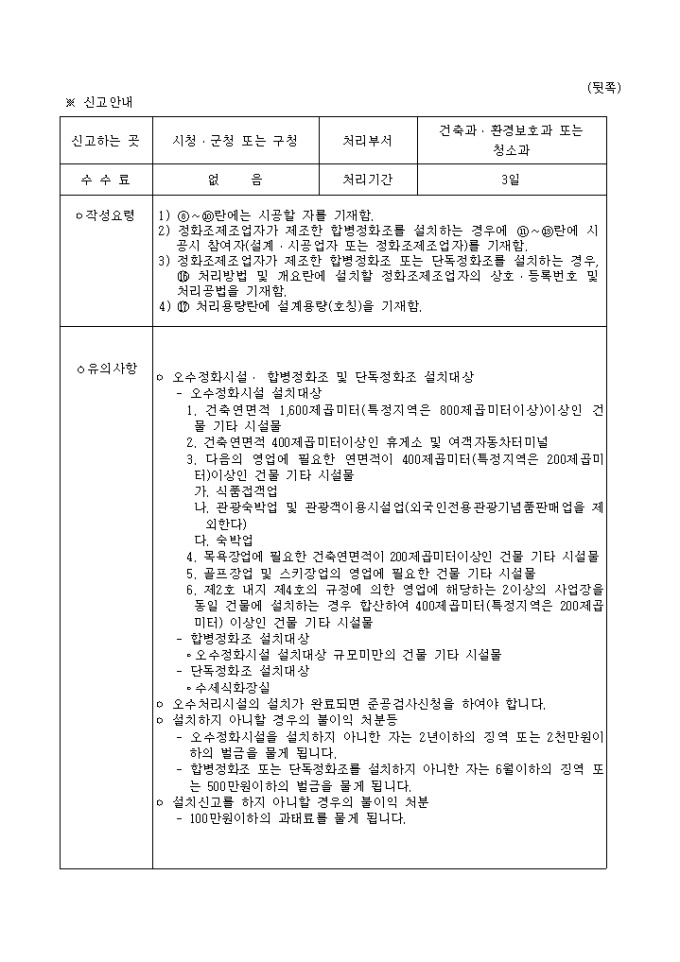 (오수정화시설, 합병정화조, 단독정화조, 설치, 변경)신고서