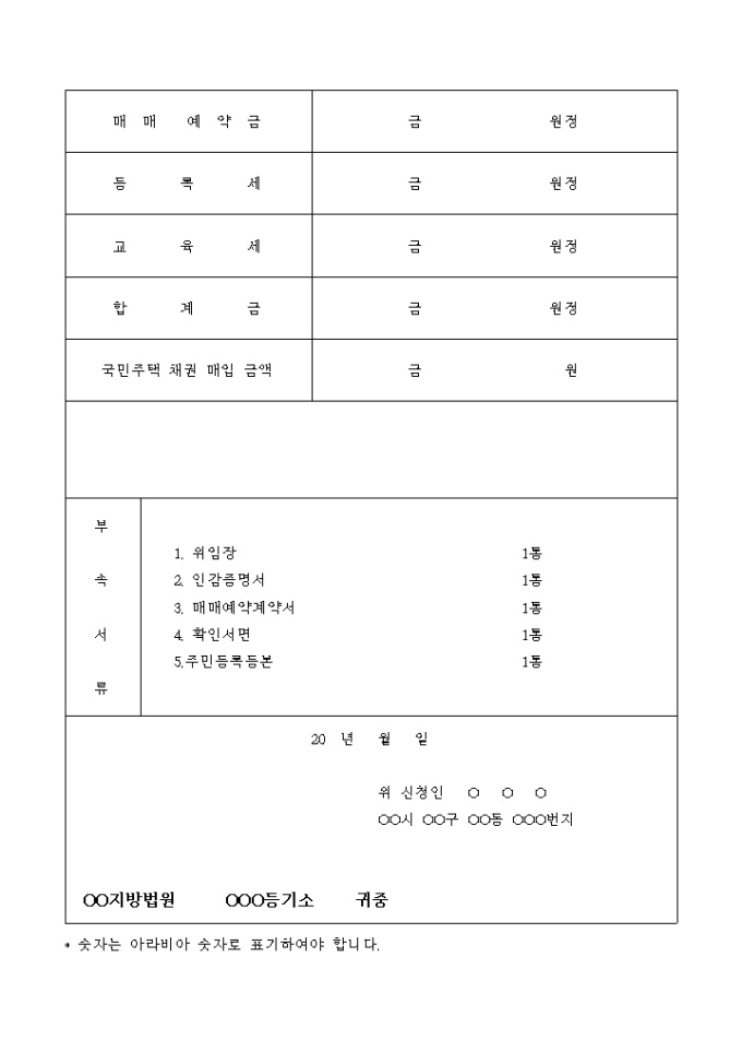 9,000원/월매매예약에 의한 가등기 신청서입니다.