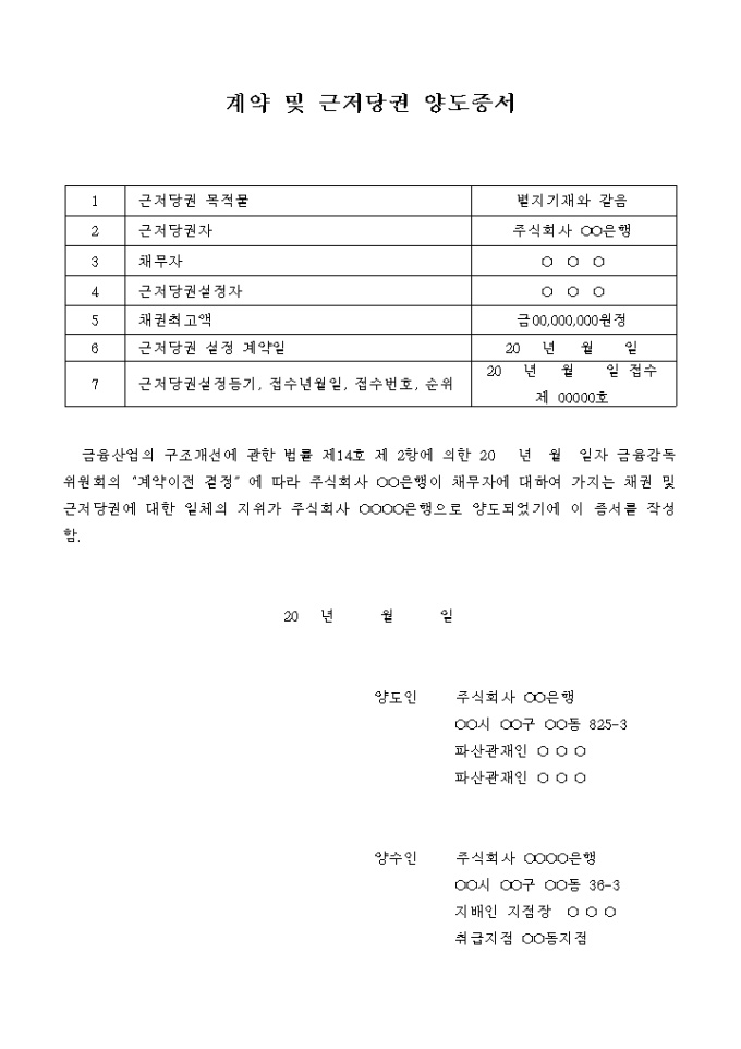 계약 및 근저당권 양도증서