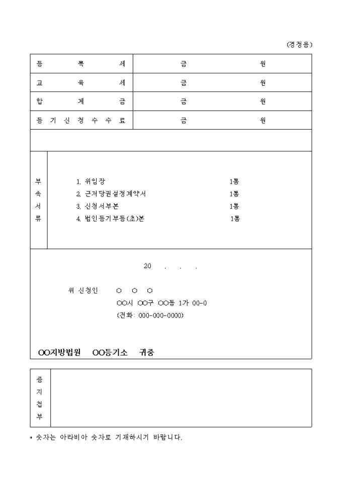 9,000원/월채무자의 성명을 잘못 기재하였으므로 구분건물 근저당권 경정등기를 신청하는 신청서입니다.