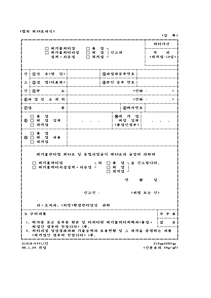 (폐기물처리업, 폐기물처리시설설계·시공업)(휴업, 폐업, 재개업)신고서
