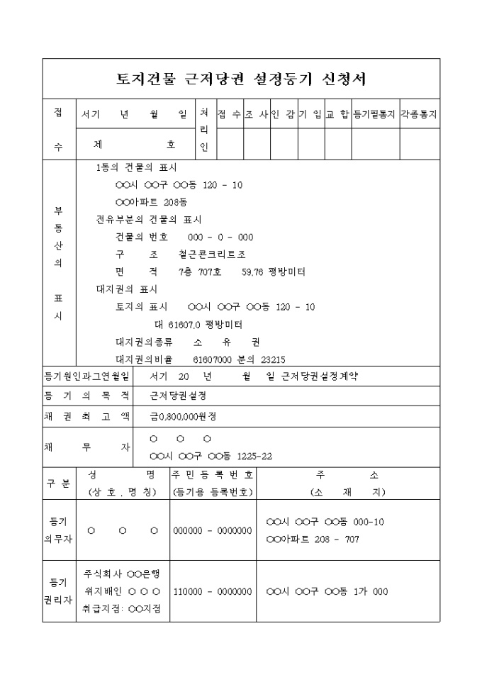 토지건물 근저당권 설정등기 신청서(근저당권 설정계약)