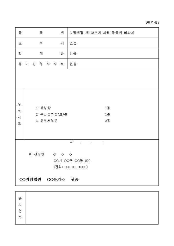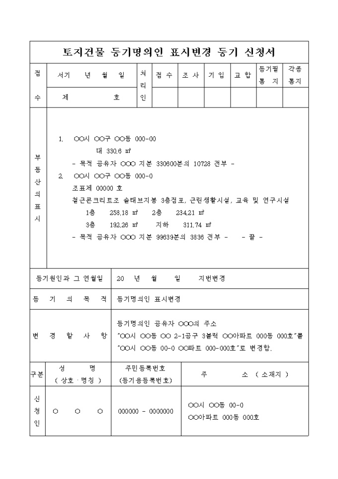 토지건물 등기명의인 표시변경 등기 신청서(지번변경)