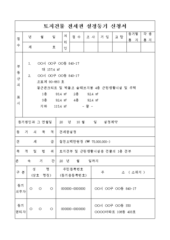 토지건물 전세권 설정등기 신청서(도면포함)