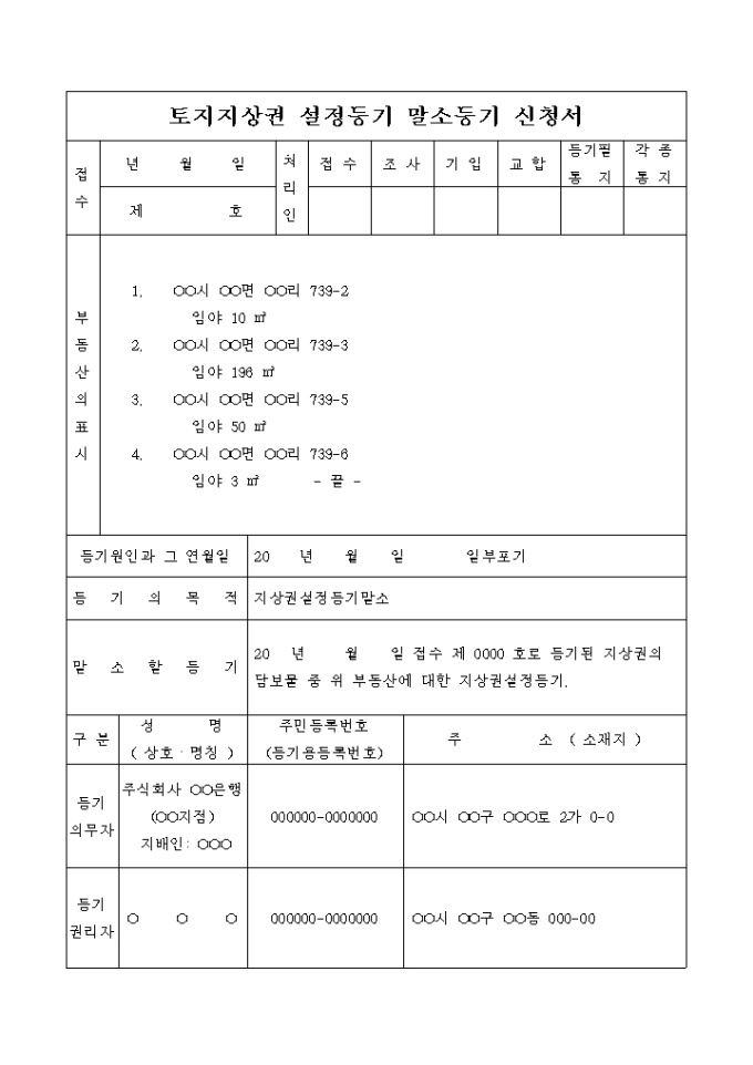 토지지상권 설정등기 말소등기 신청서(일부포기)