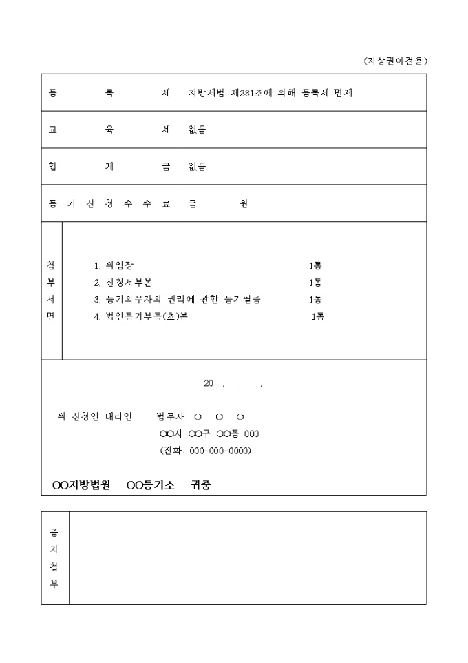 토지지상권 이전등기 신청서(합병)