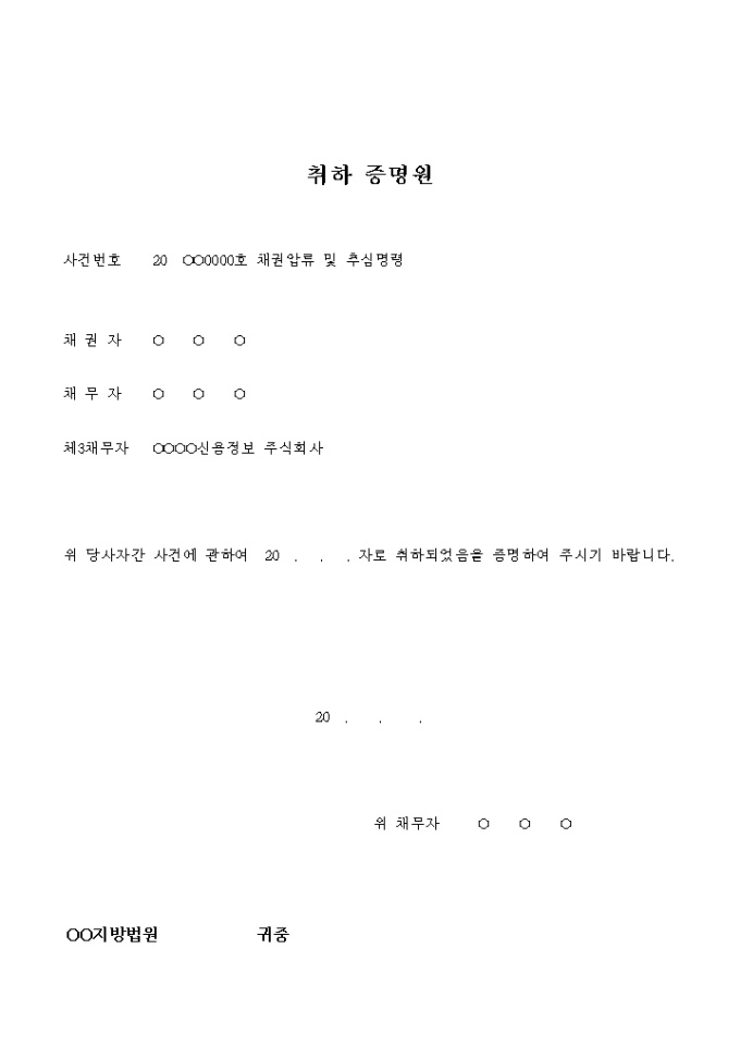 소송취하 증명원(채권압류 및 추심명령)