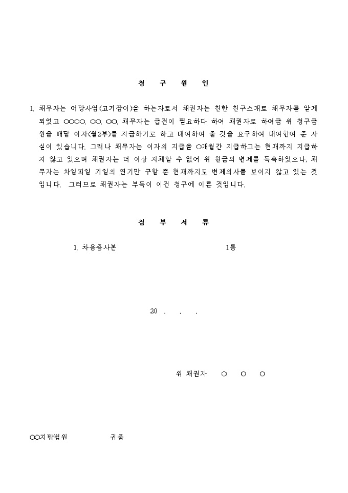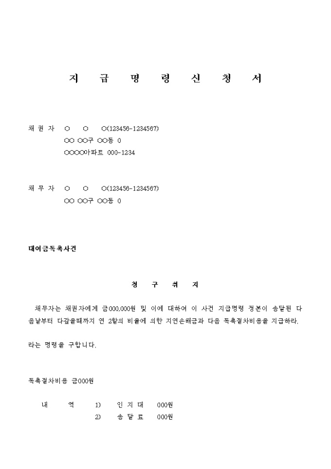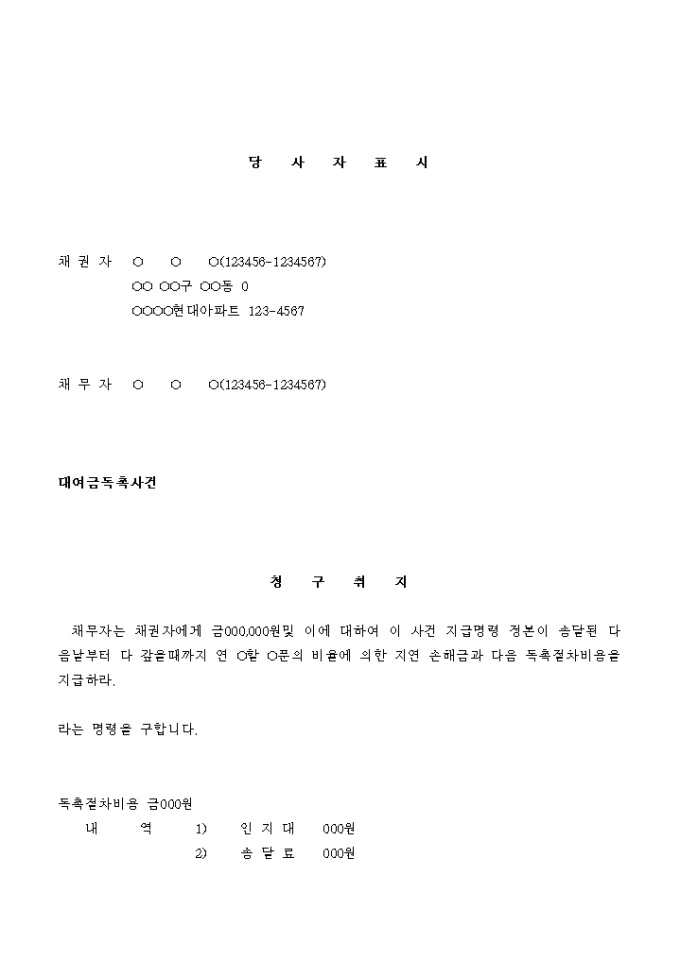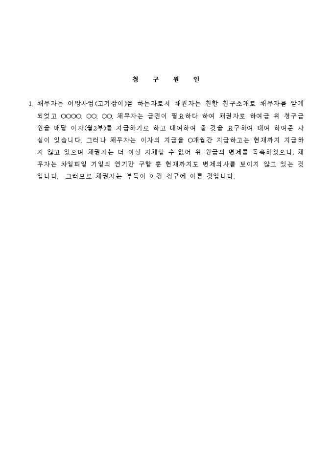 9,000원/월어망사업을 하는 채무자에게 대여금을 독촉하는 지급명령신청서입니다.