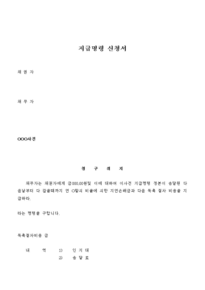9,000원/월지급명령 신청서 의 기본적인 견본입니다.