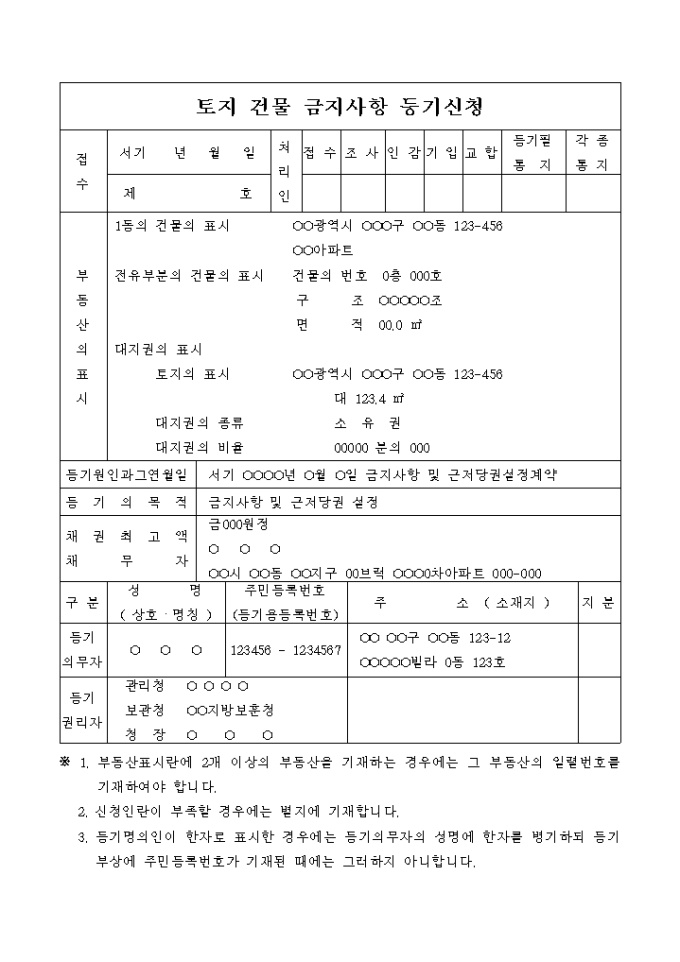 금지사항 및 근저당권설정 등기 신청서(설정계약)