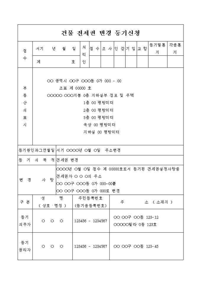 전세권 변경등기 신청 및 주소변경 위임장