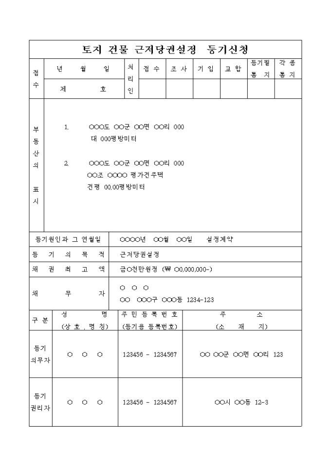 토지 건물 근저당권설정 등기 신청서