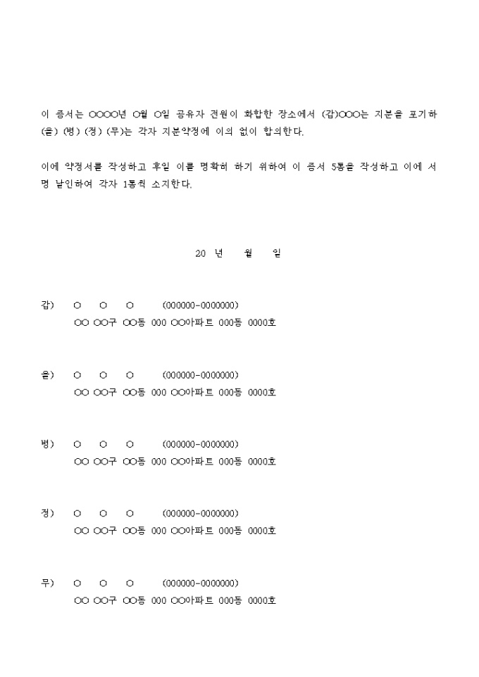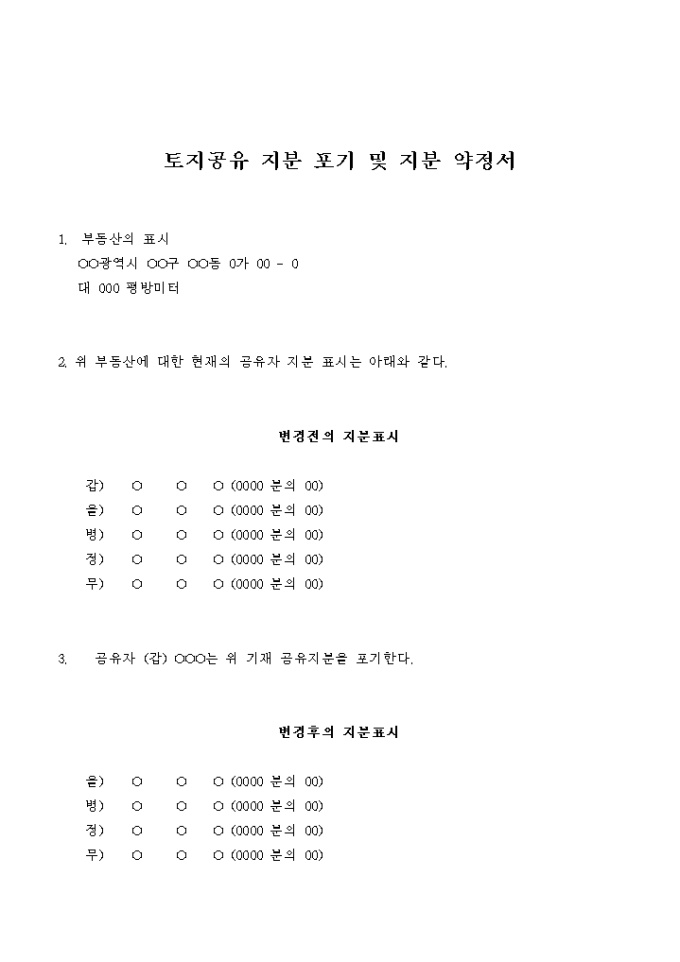 토지공유 지분포기 및 지분 약정서