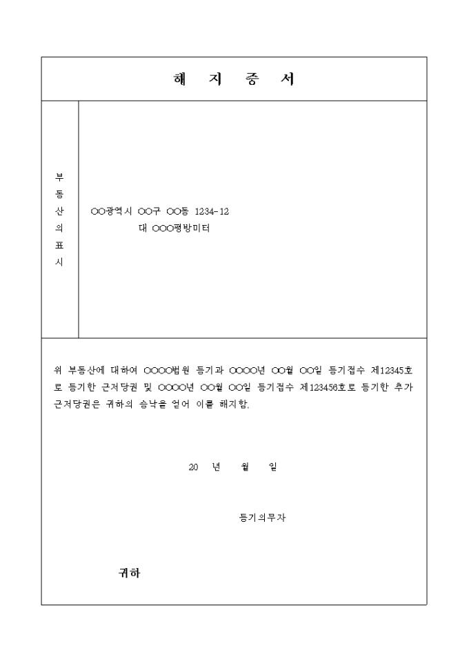 해지증서(추가근저당권의 해지)