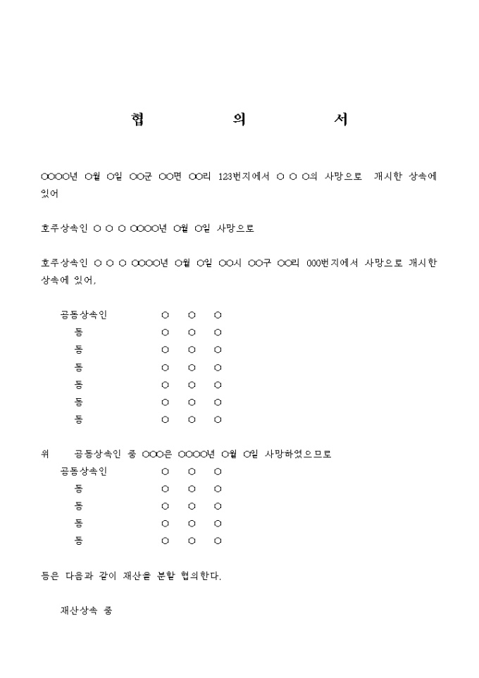 9,000원/월상속재산의 분할을 협의 하는 협의서입니다.