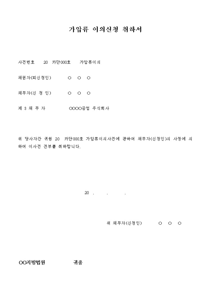 가압류 이의신청 취하서