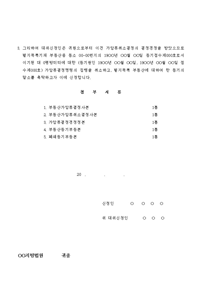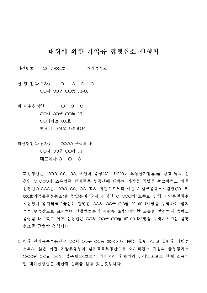 9,000원/월대위에 의한 가압류 집행취소 신청서입니다.