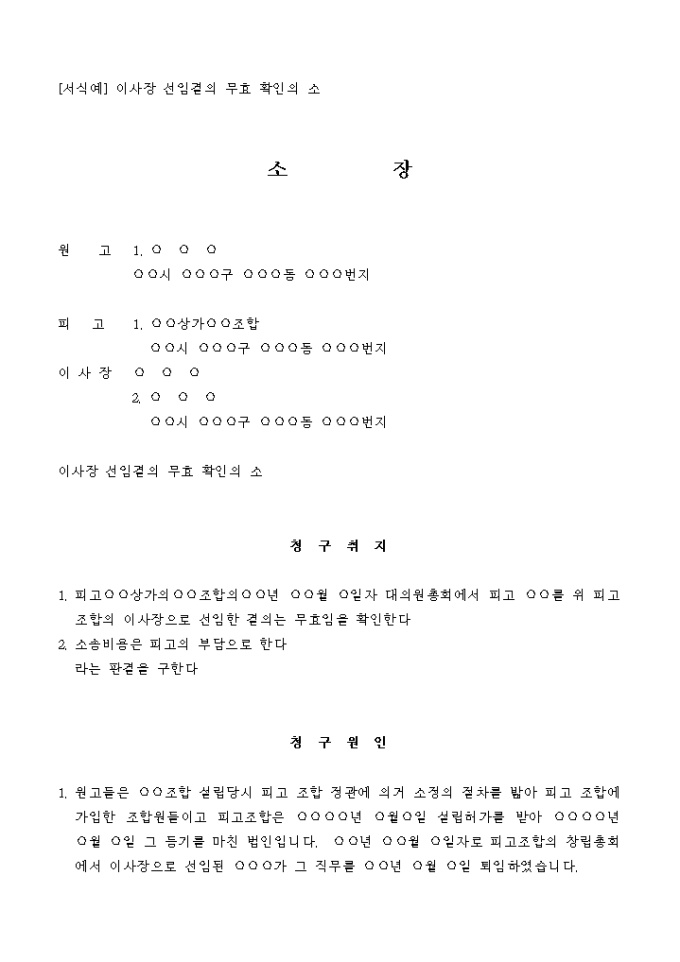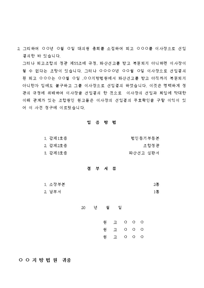 이사장 선임결의 무효 확인 소송의 소장입니다.