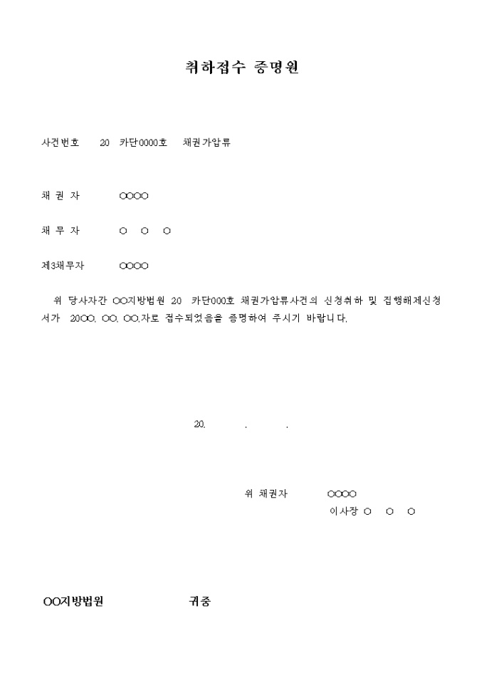 9,000원/월채권가압류 취하신청서의 접수 증명원입니다.