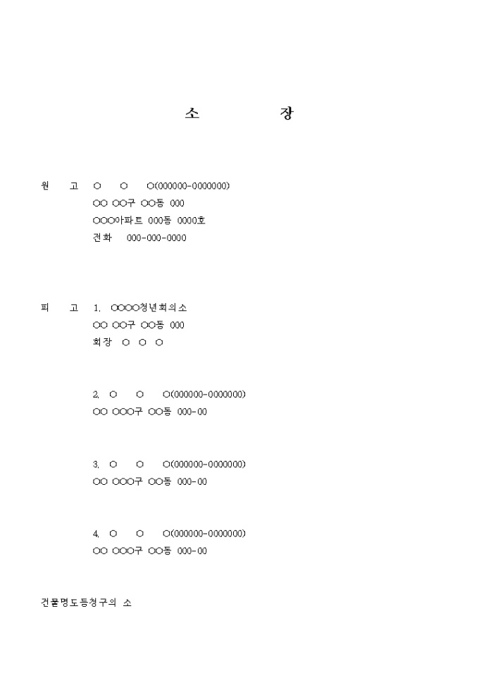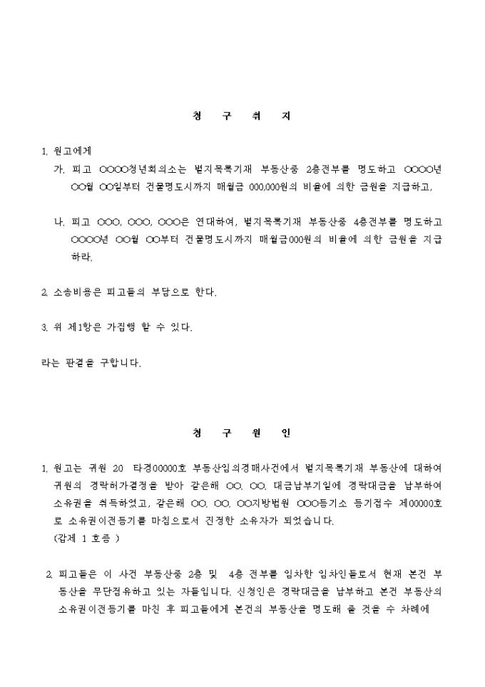 9,000원/월피고가 다수인 경우의 건물명도 청구 소송 소장입니다.