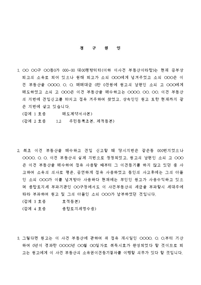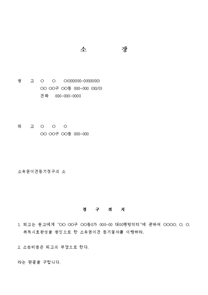 9,000원/월소유권이전 등기를 청구하는 소장입니다.