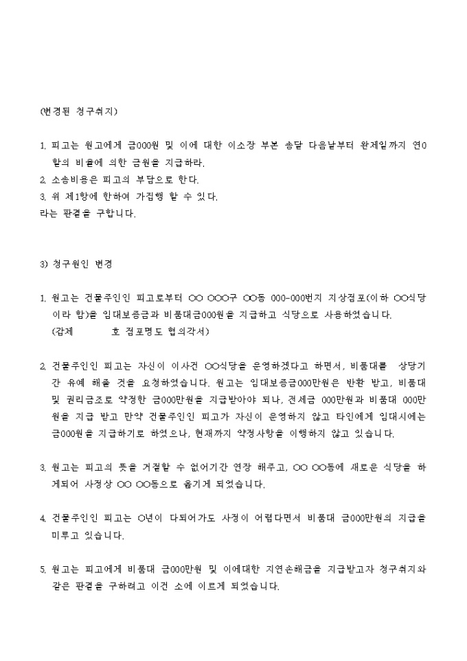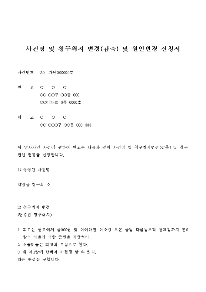 사건명 및 청구취지 변경(감축)및 원인변경 신청서