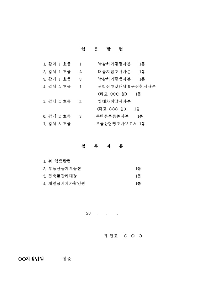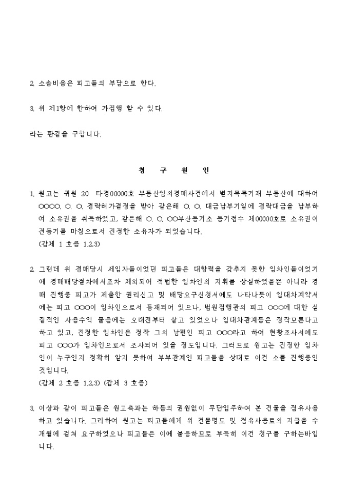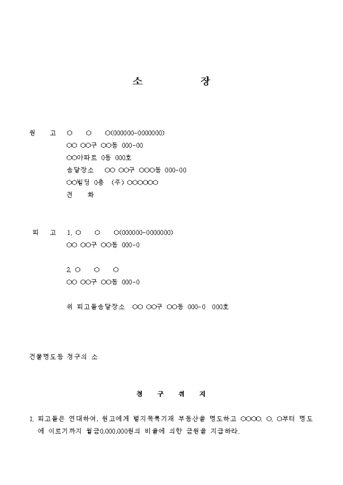 9,000원/월건물명도등을 청구하는 소장입니다.