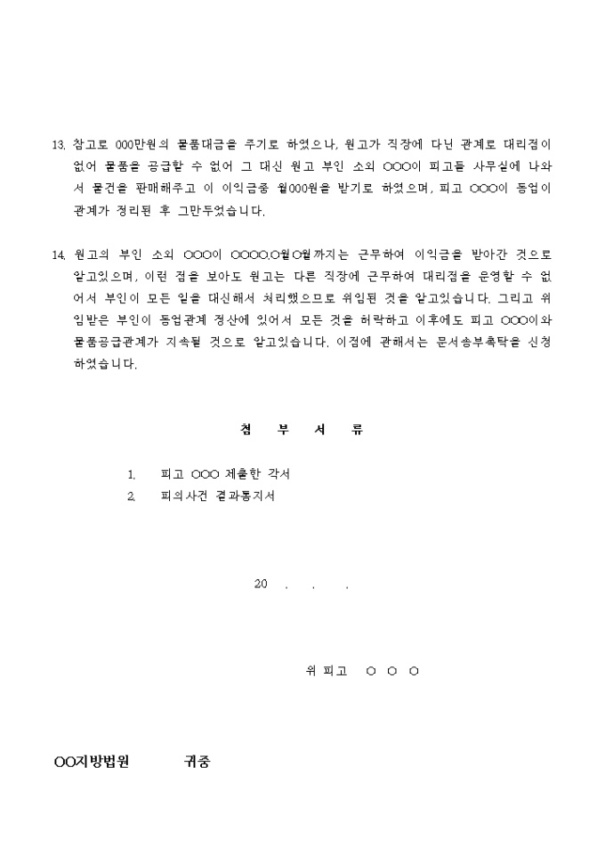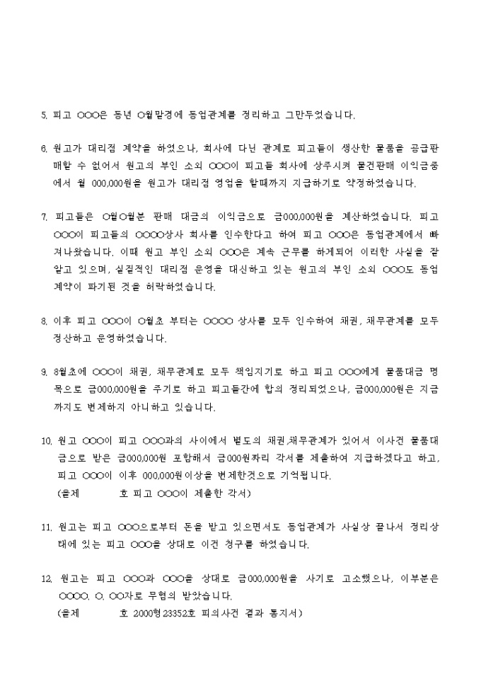 9,000원/월매매대금 청구소송의 청구원인 변경 신청서입니다.
