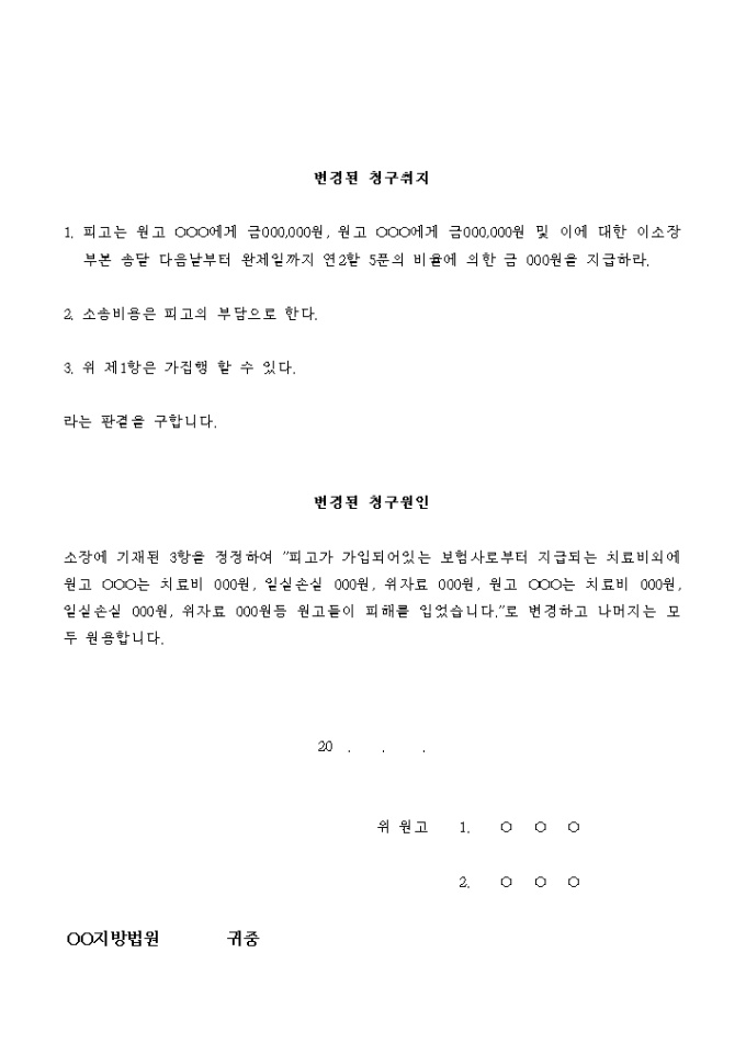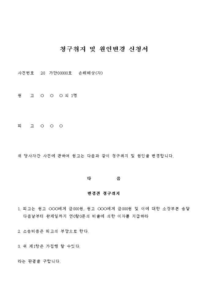 손해배상금 청구소송의 청구취지 및 원인변경 신청서입니다.
