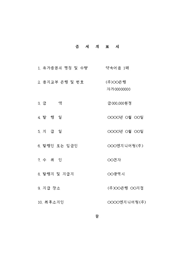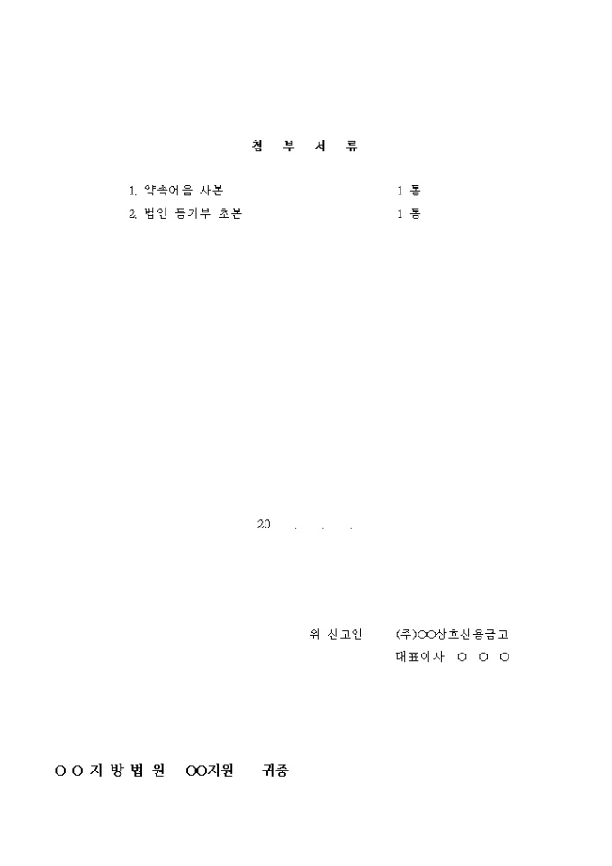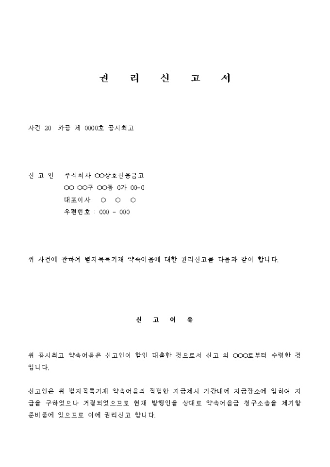 공시최고 약속어음에 대한 권리 신고서입니다.