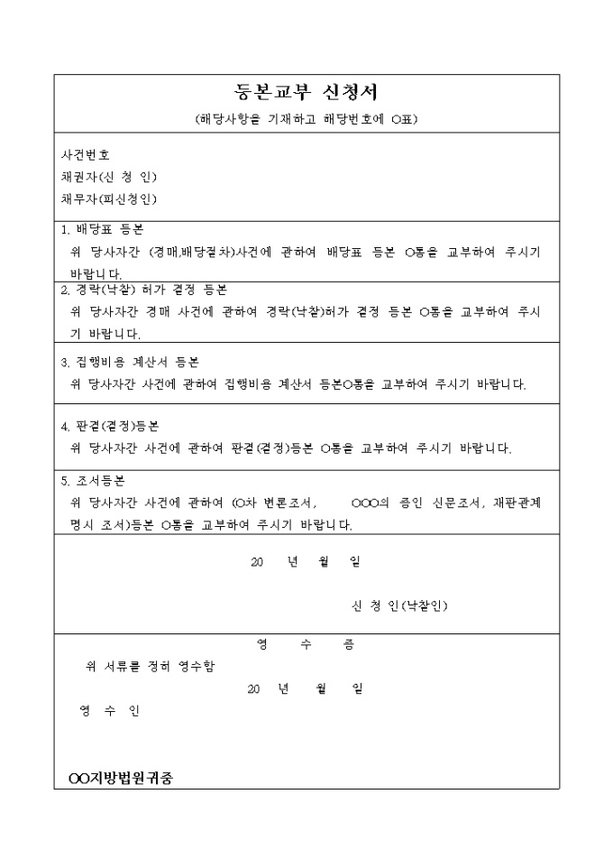 집행관련 각종문서의 등본의 교부를 신청하는 양식입니다.
