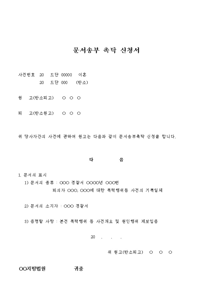 문서송부 촉탁 신청서(이혼_반소)