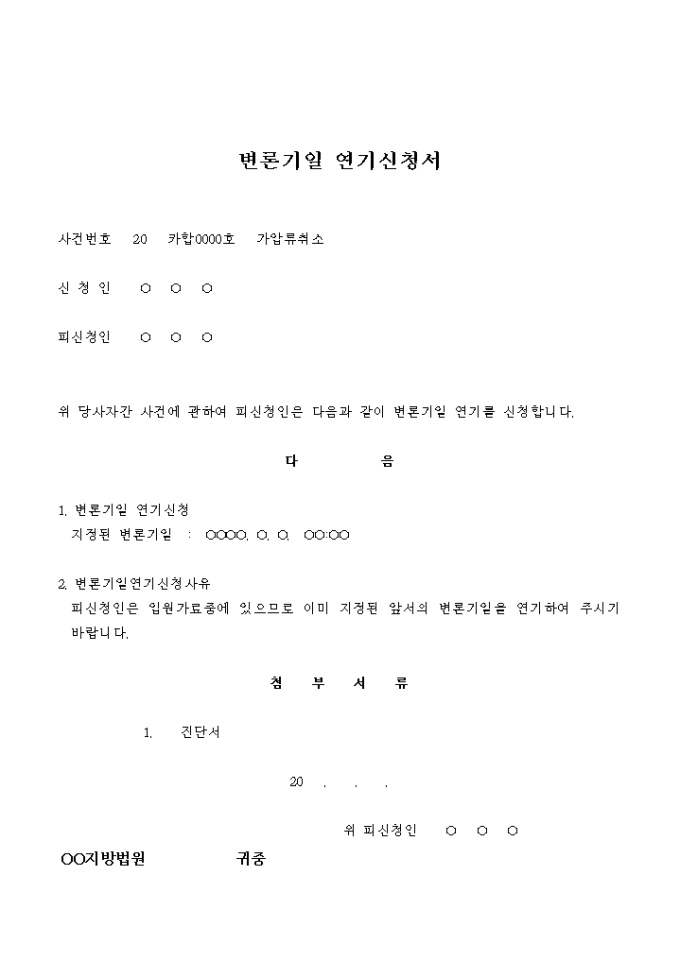 변론기일 연기 신청서(가압류취소)