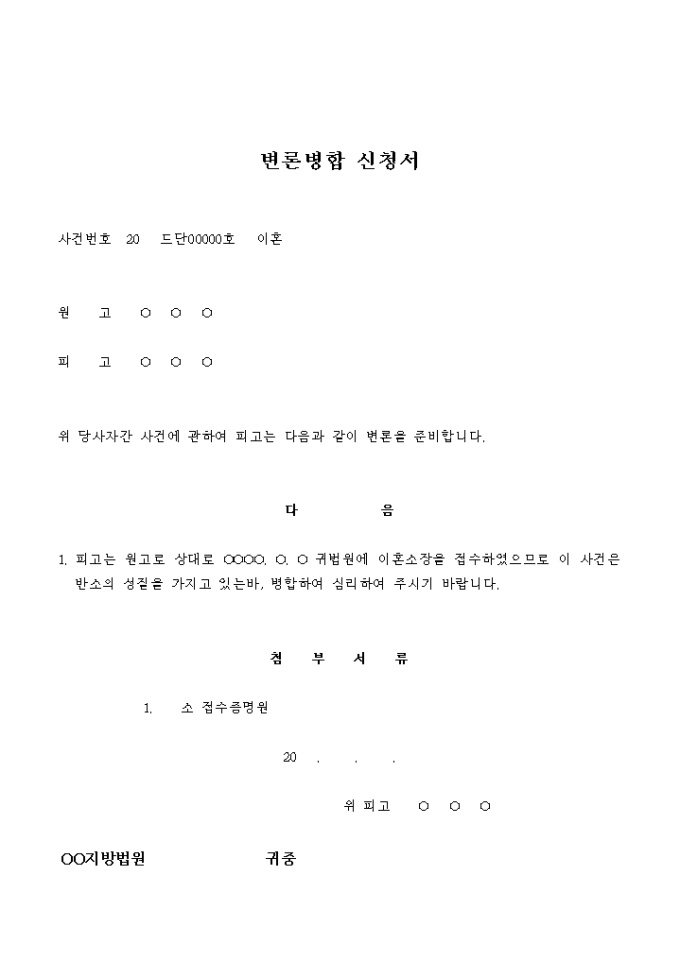 9,000원/월이혼소송의 변론병합 신청서입니다.