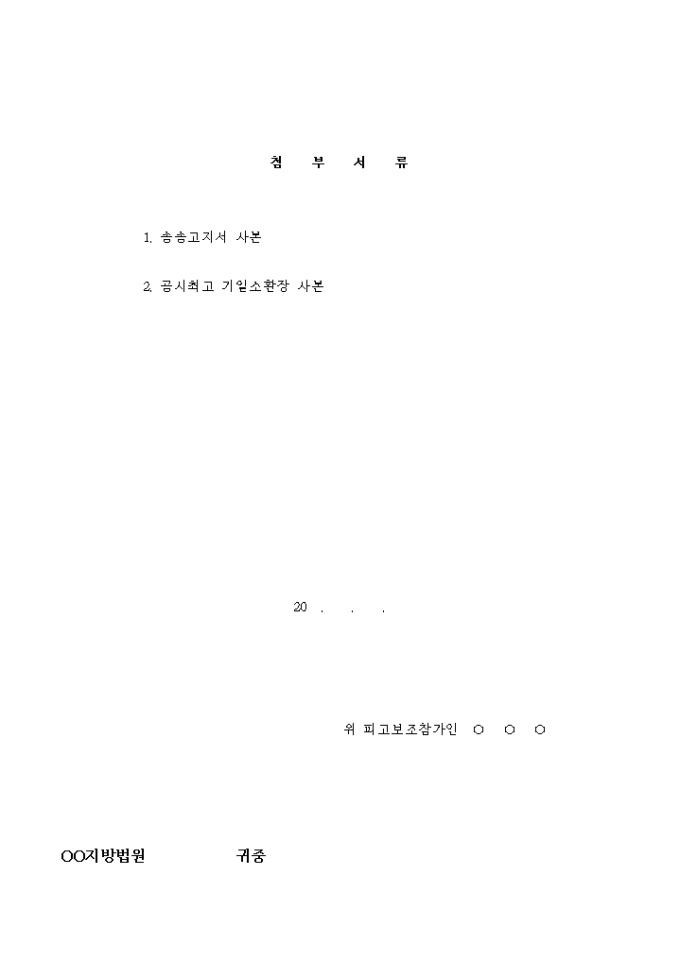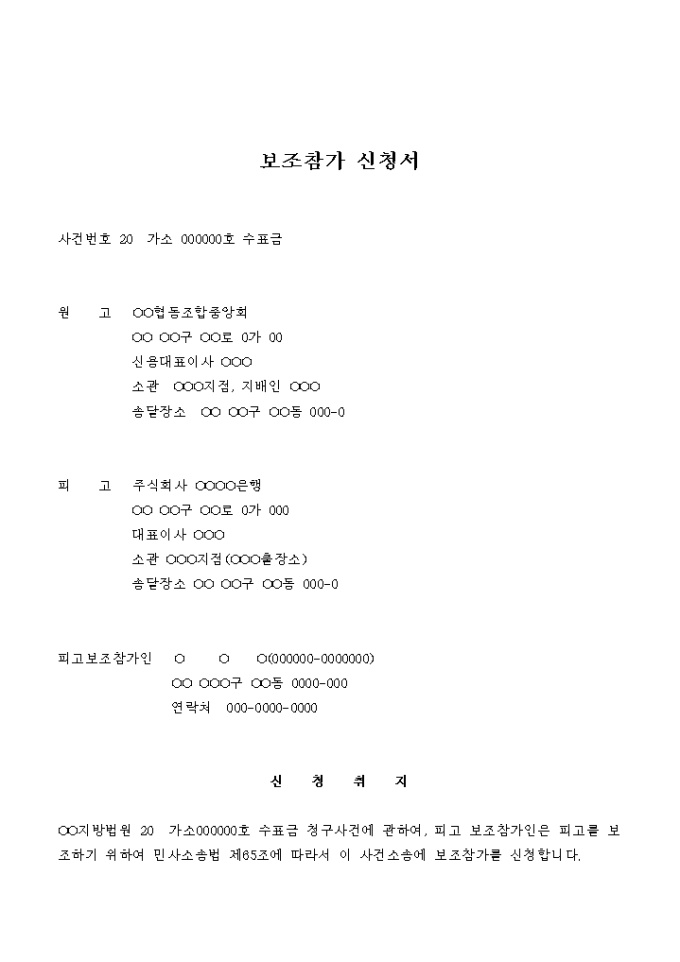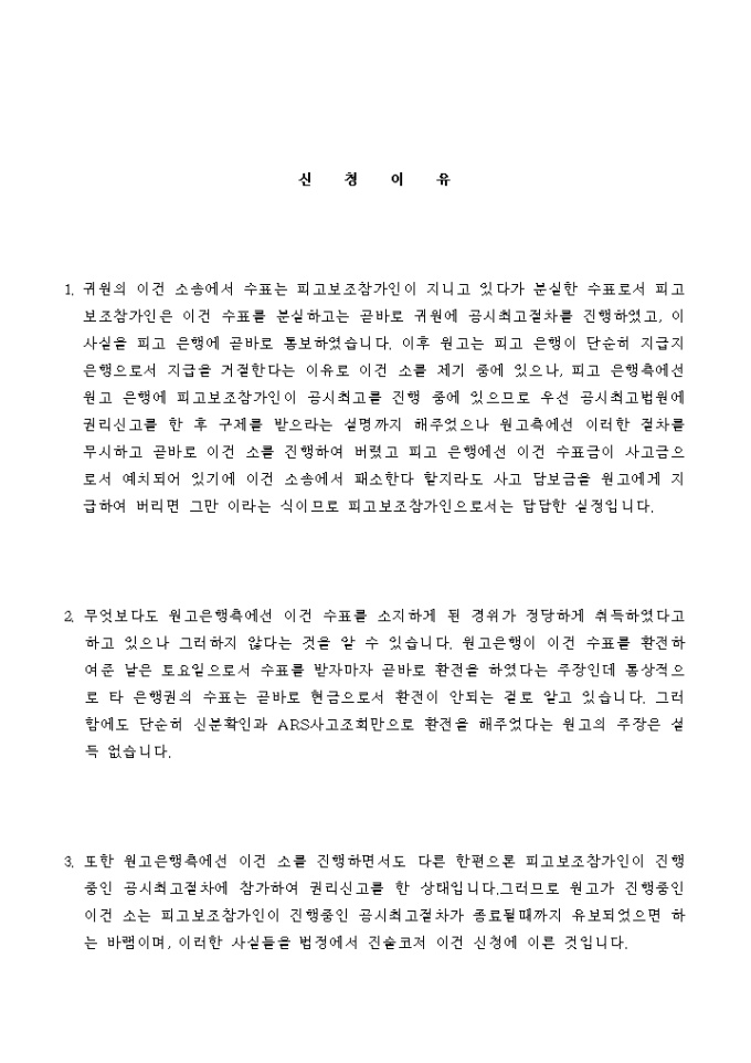 9,000원/월수표금청구사건의 보조참가 신청서입니다.