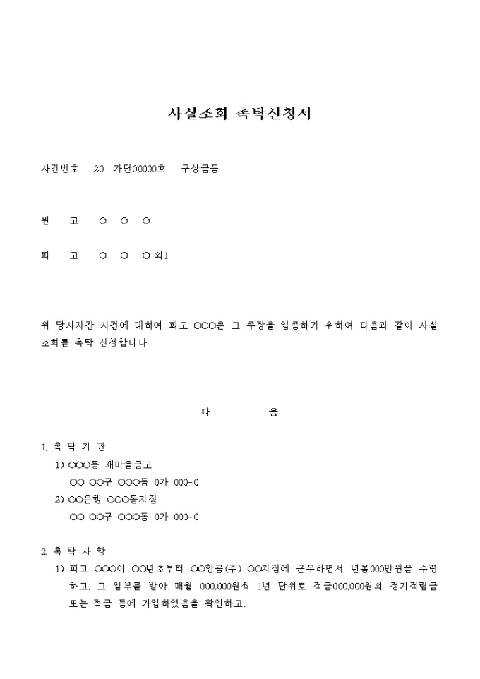 사실조회 촉탁 신청서(구상금 청구의 소_적금 거래 내역 조회)
