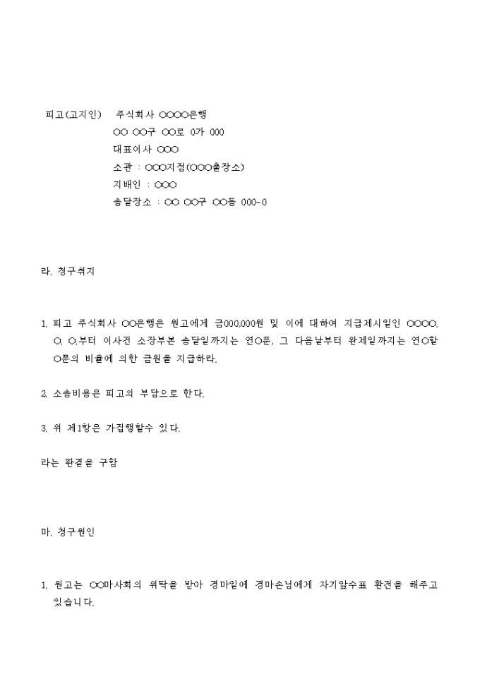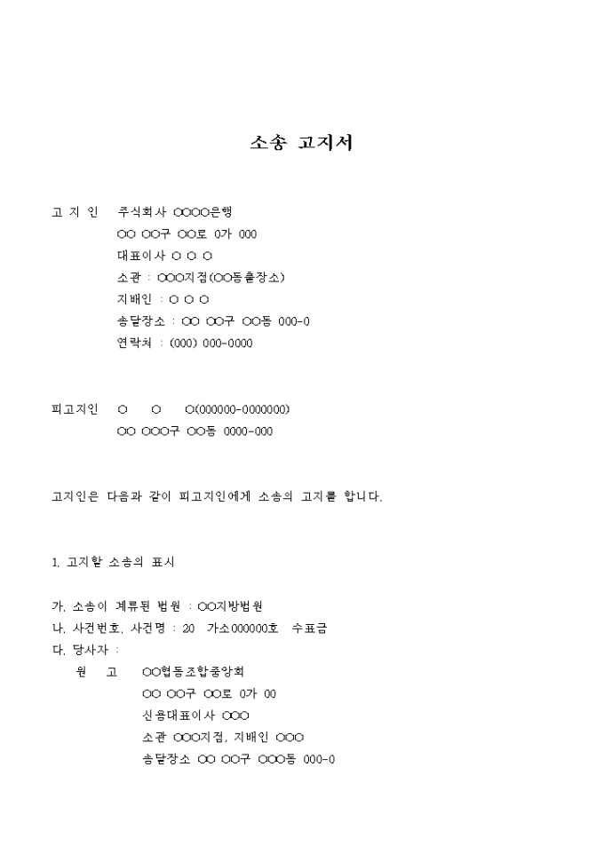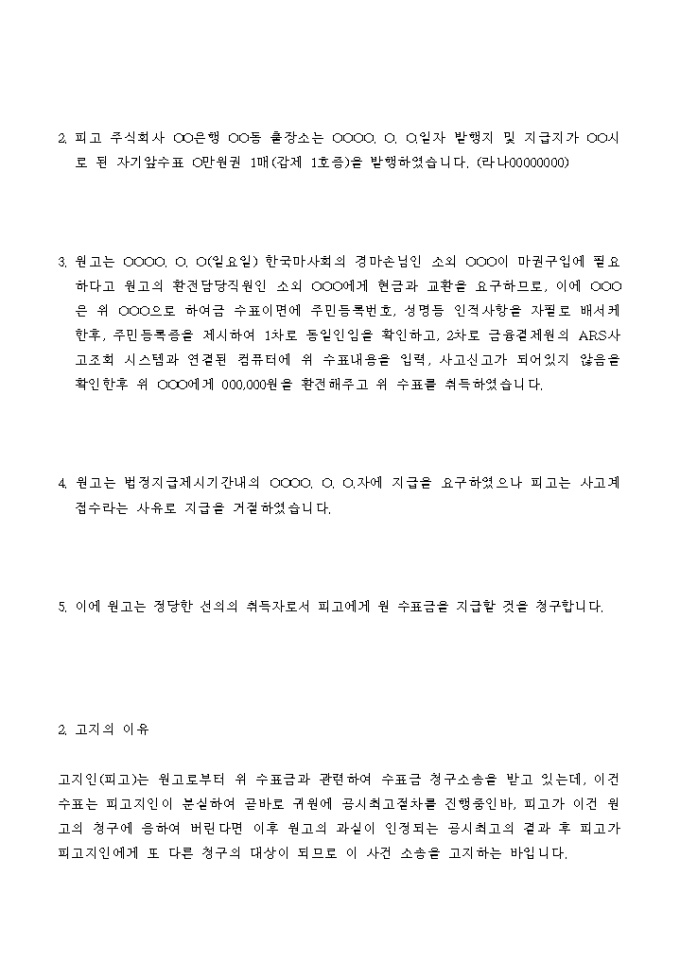 9,000원/월수표금 청구소송의 소송 고지서입니다.