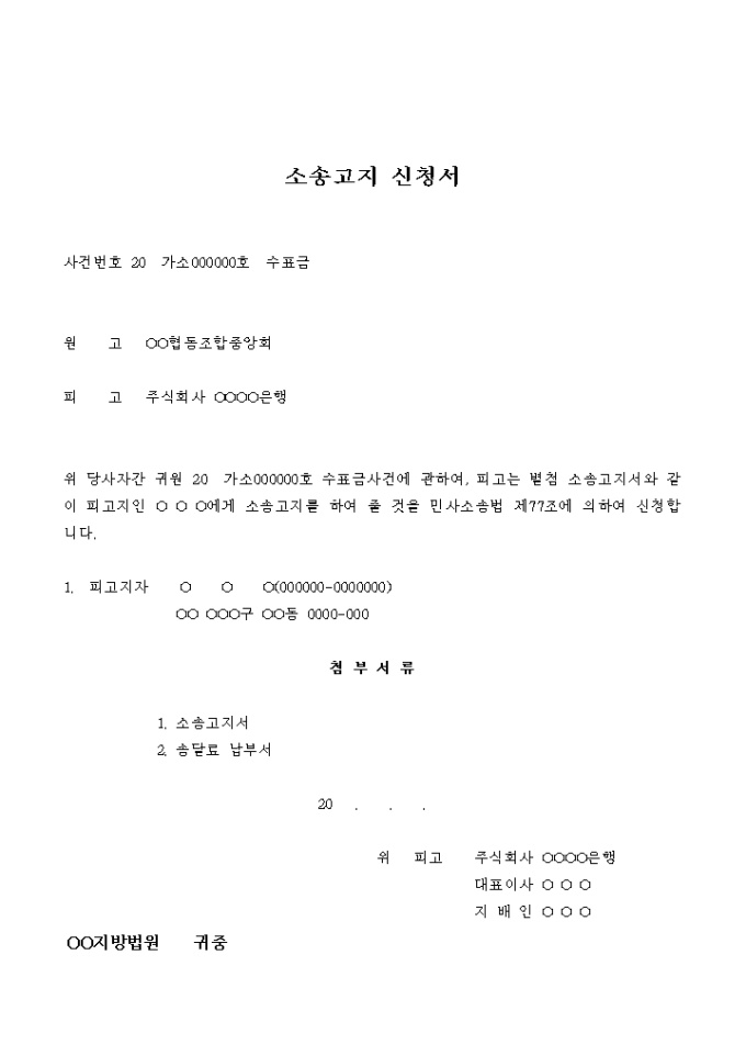 소송고지 신청서(수표금)