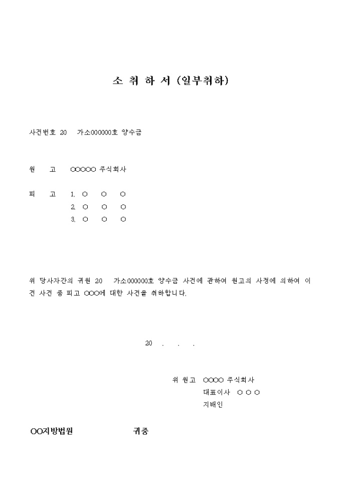 소취하서(일부취하_양수금)