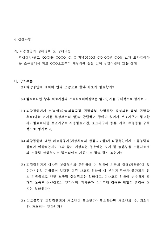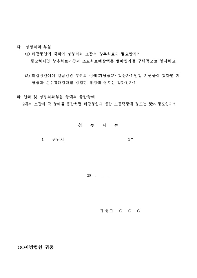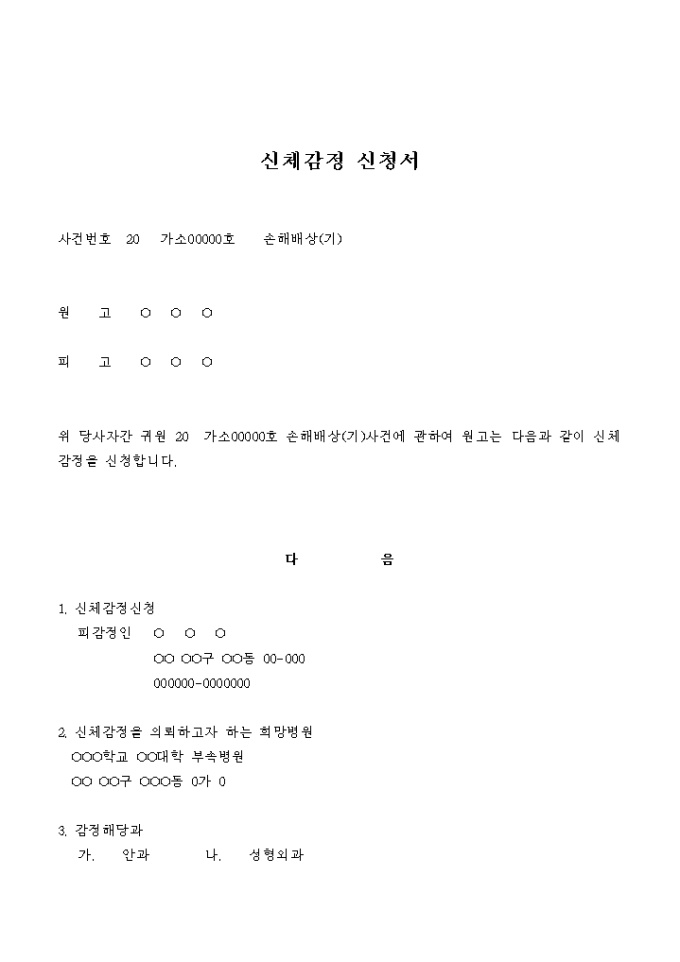 신체감정 신청서(손해배상_안과, 성형외과)
