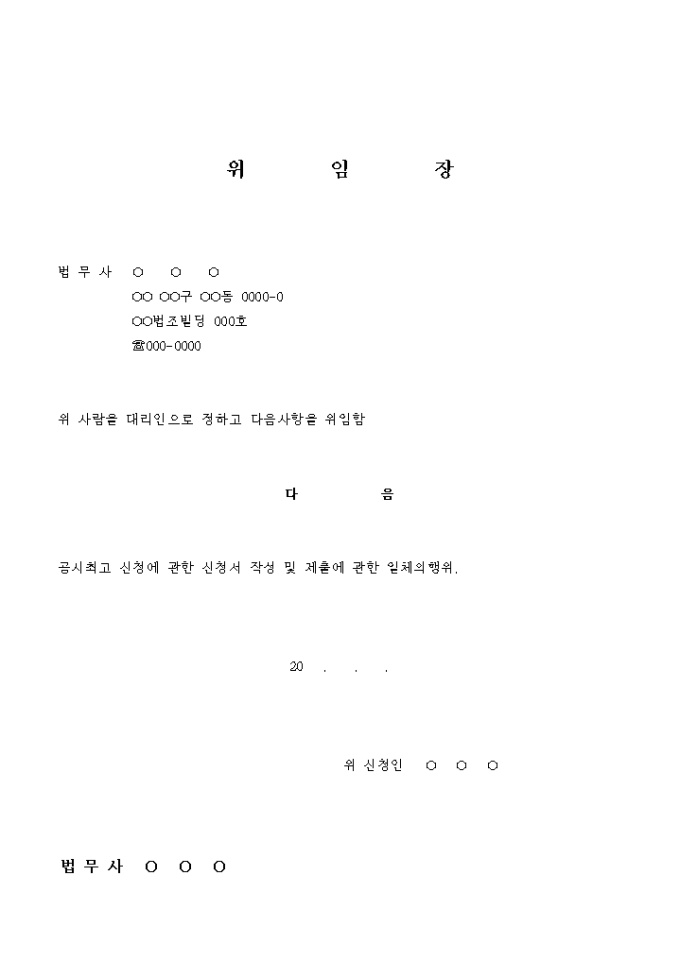9,000원/월공시최고 신청서를 작성하고 제출하는 일체의 행위를 위임하는 위임장입니다.