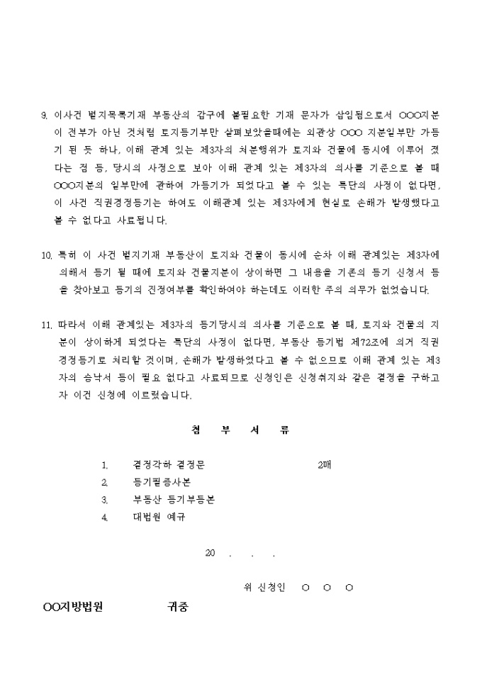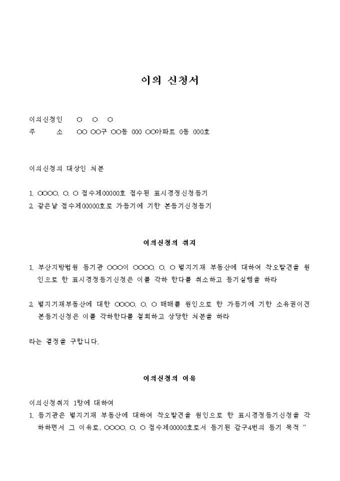 9,000원/월가등기에 의한 본등기신청에 대한 이의 신청서입니다.