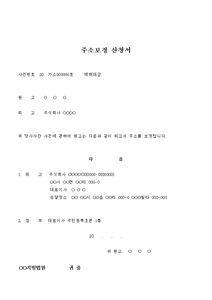 주소보정 신청서(매매대금)