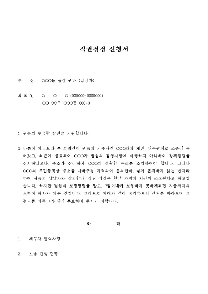 직권정정 신청서