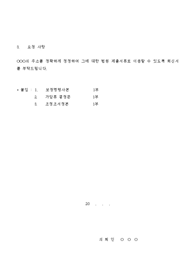 채무자의 주소가 상이함을 이유로 채무자의 주소를 직권정정할 것을 청구하는 신청서입니다.